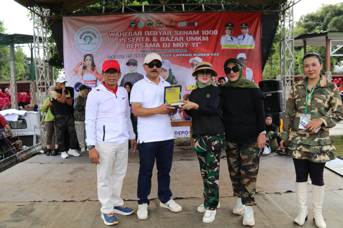 GARUT/Kalampriangan.com – Kepala Dinas Pengendalian Penduduk, Keluarga Berencana, Pemberdayaan Perempuan dan Perlindungan Anak (DPPKBPPPA) Kabupaten Garut, Yayan Waryana, secara resmi membuka kegiatan “Gebyar 1000 Peserta Senam Se-Kabupaten Garut” yang diselenggarakan oleh Wanita Hebat Garut (Wahegar). Acara ini berlangsung di Korem 062/TN Garut, Jalan Bratayuda, Kecamatan Garut Kota, Sabtu (15/11/2025), sebagai upaya meningkatkan kebugaran dan kesehatan masyarakat.