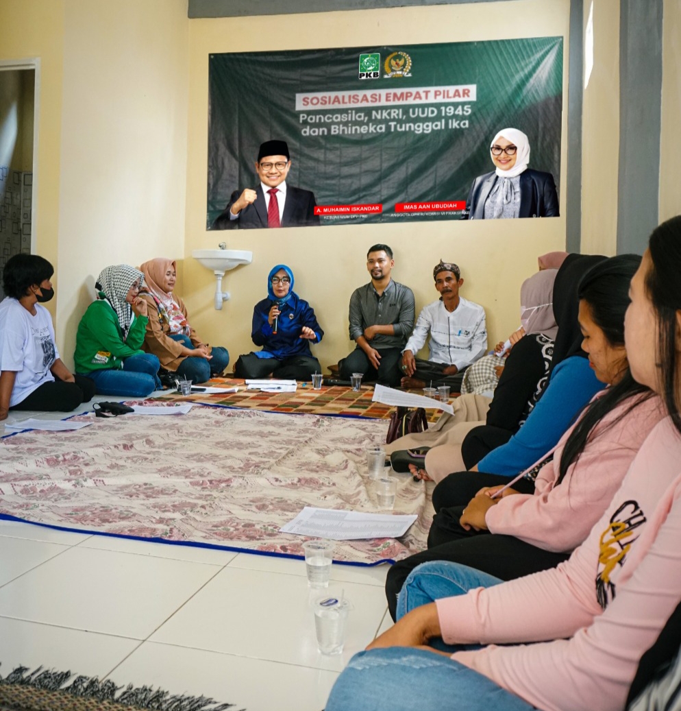 GARUT/Kalampriangan.com – Anggota DPR RI dari Fraksi Partai Kebagkitan Bangsa (PKB) Imas Aan Ubudiah, S.Pd.I, daerah pemilihan (Dapil) Jawa Barat XI Kabupaten Garut, Kabupaten Tasikmalaya, dan Kota Tasikmalaya mengadakan sosialisasi empat pilar Kebangsaan bersama para pelaku Usaha Mikro, Kecil, dan Menengah (UMKM) Kabupaten Garut, bertempat di Aula Kampung Sampireun, Jalan Kamojang, Kecamatan Samarang, Kabupaten Garut, Minggu (8/2/2026).